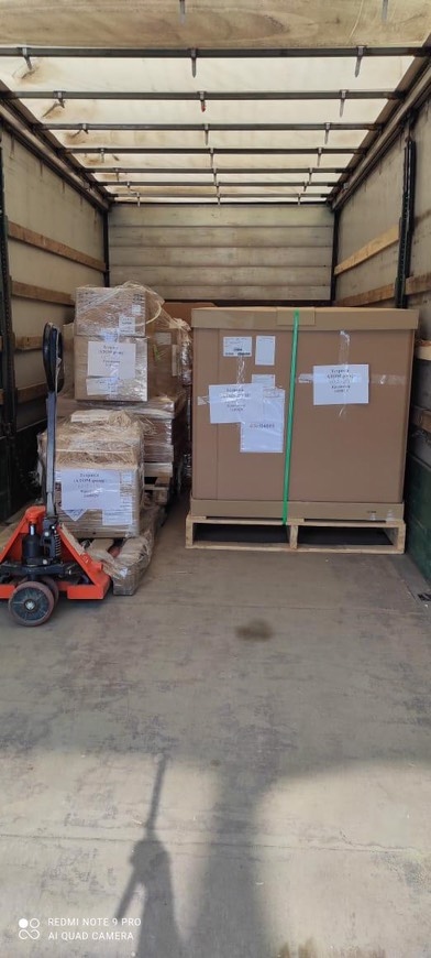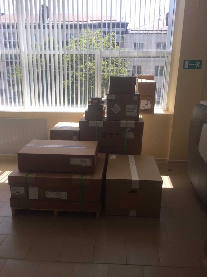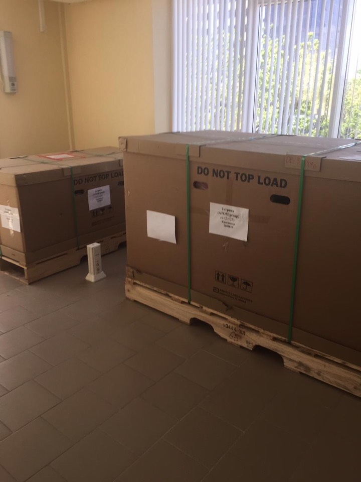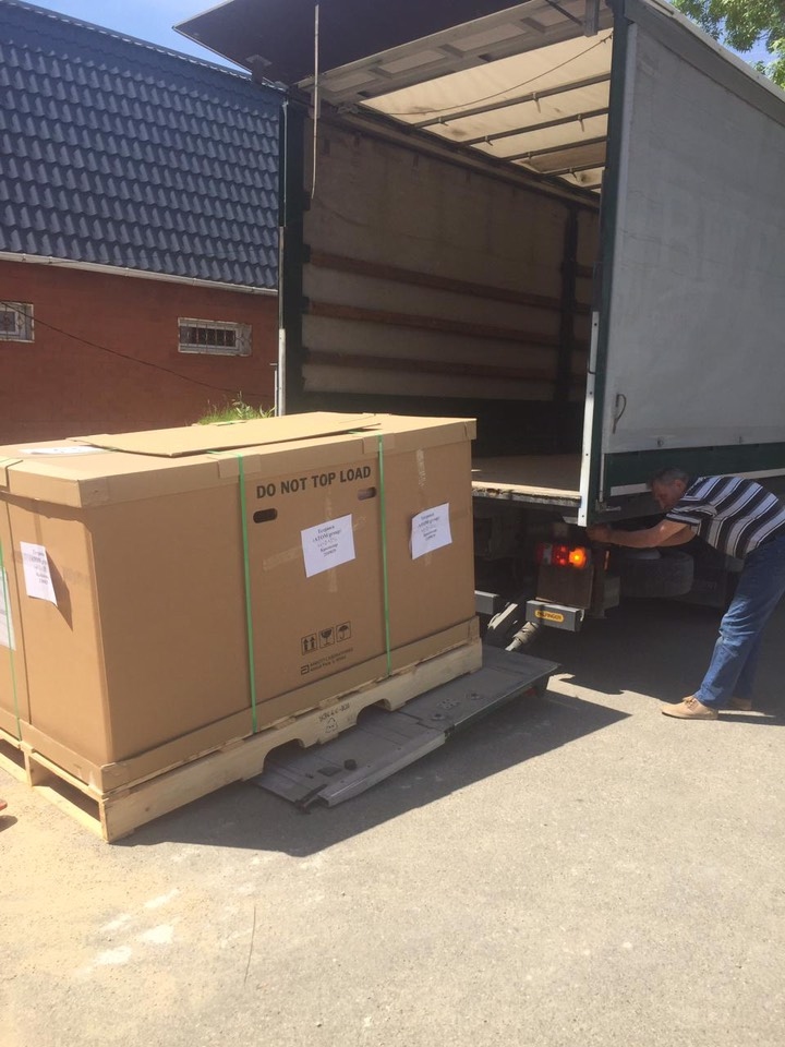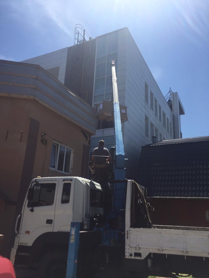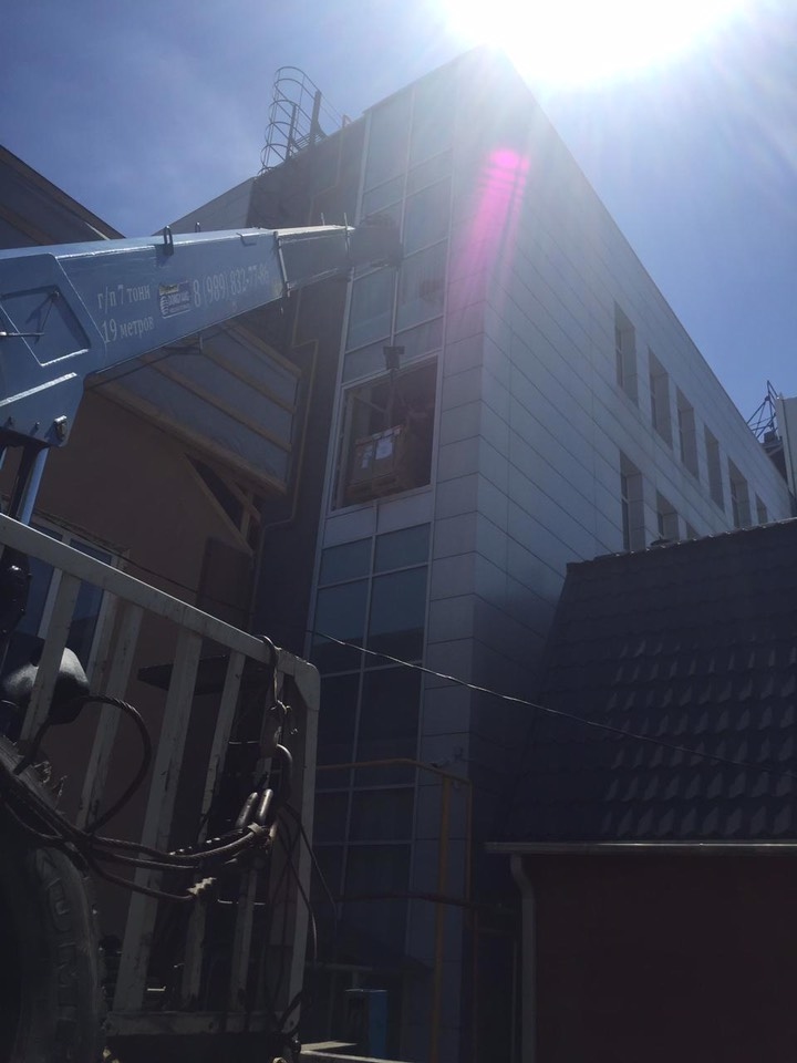 Подъем оборудования при помощи манипулятора на 3-й этаж