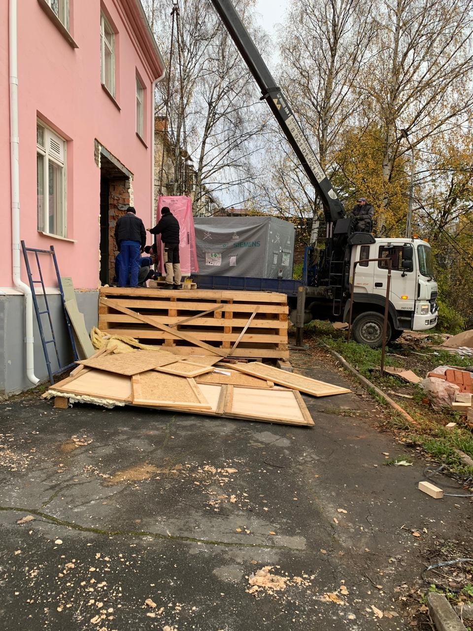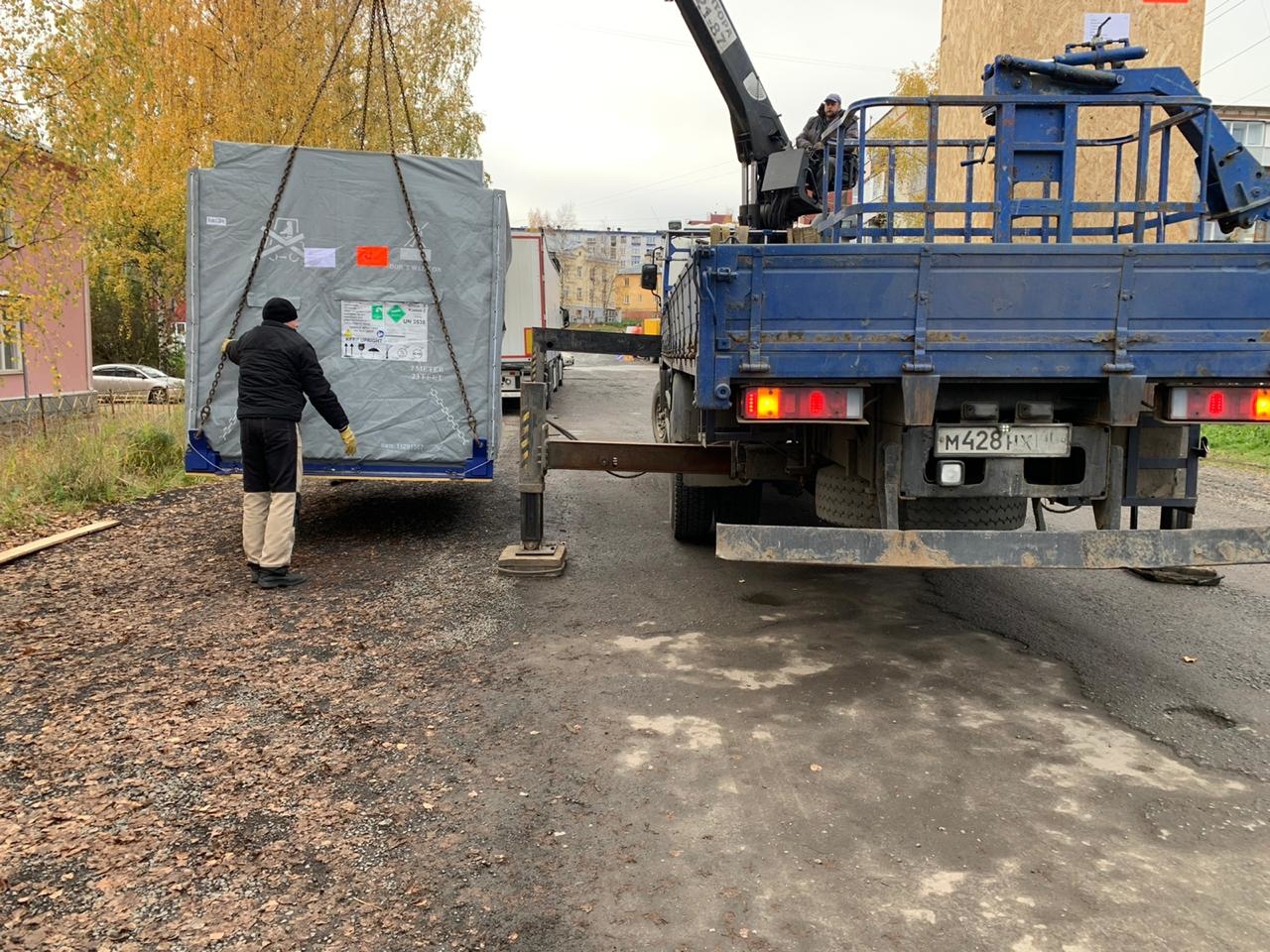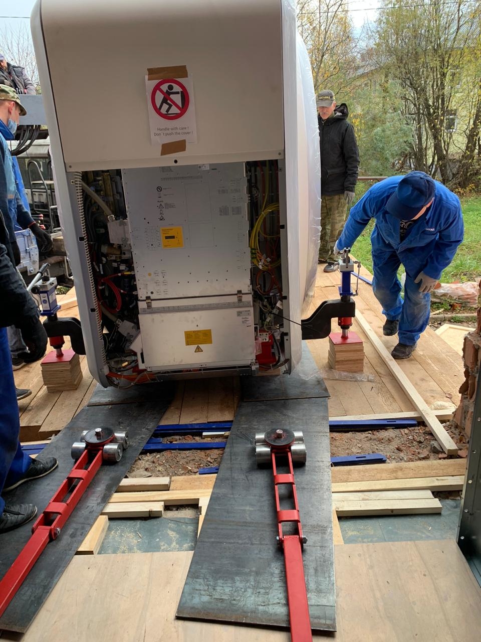 Такелажные работы аппарата МРТ фирмы Siemens в г. Петрозаводск, ул. Мичуринская, д. 11.