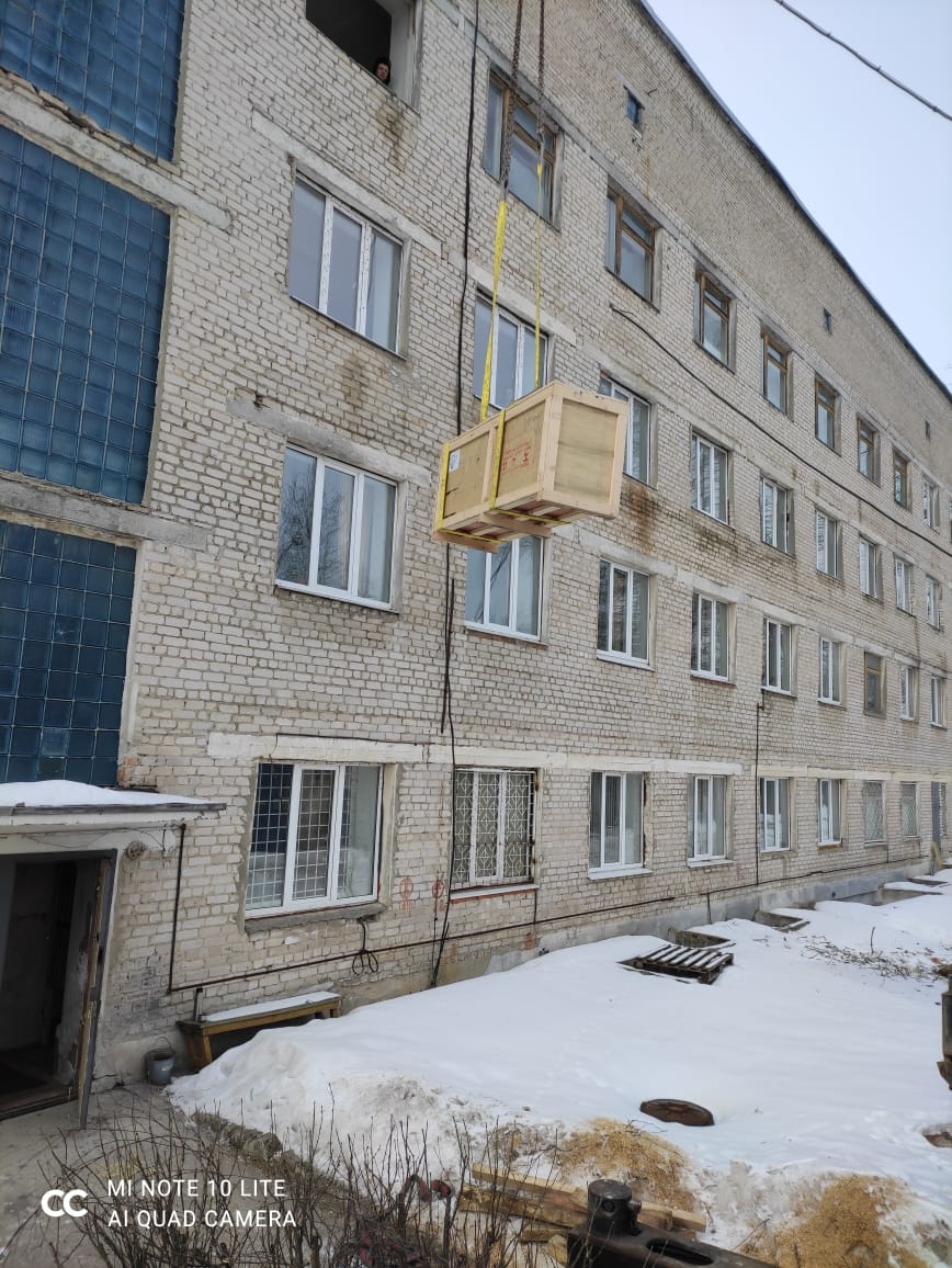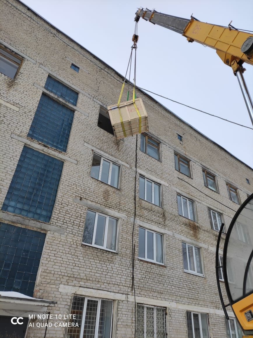 Задача: подать оборудование через окно на 4 этаже. Провести демонтаж/монтаж оконного проема.