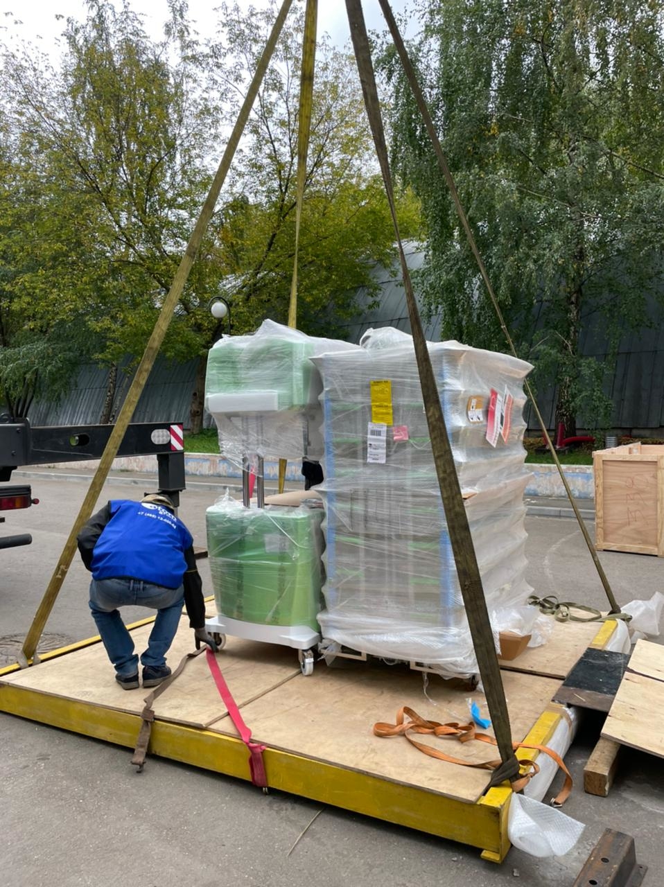 После того как оборудование было распределено по этажам, наши такелажники, совместно с инженером компании заказчика, расставили оборудование согласно проектному положению.